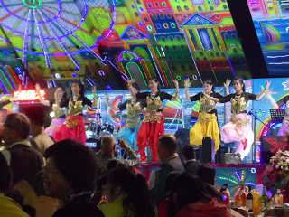 Y bueno, en el centro había un escenario con un fondo de feria. Y por fondo de feria, me refiero a una “pared” llena de dibujos con muchas luces de colores estratégica y excesivamente colocados. Al parecer son queridos aquí, porque hasta en los Night Markets he visto, aunque sólo cuando hay show.
