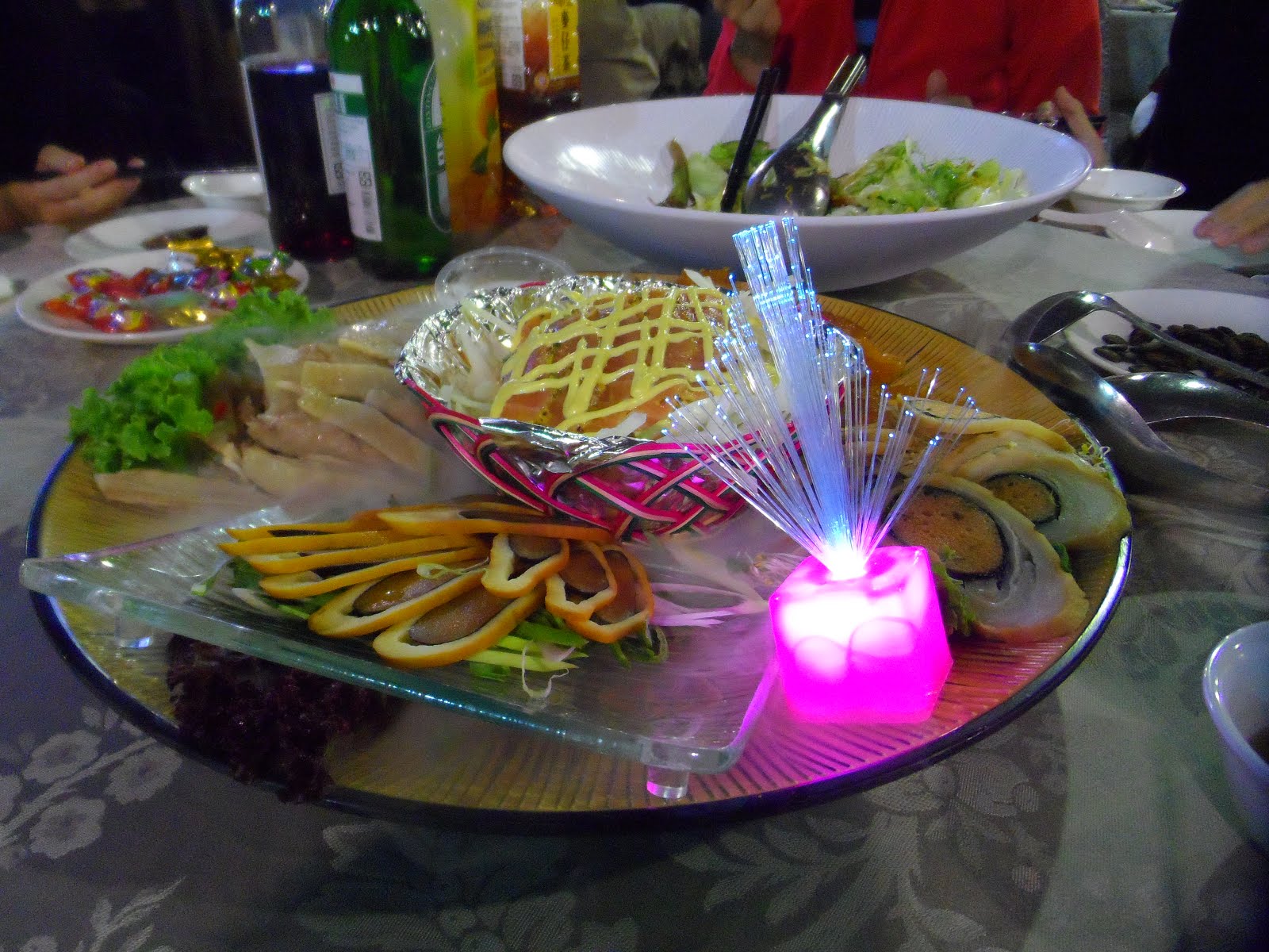 Acá no le traen el platillo a cada quién, sino que, como en todas las comidas, traen distintos platillos al centro y cada quién se sirve lo que quiere. Hay que ser cuidadoso con las porciones, jaja.