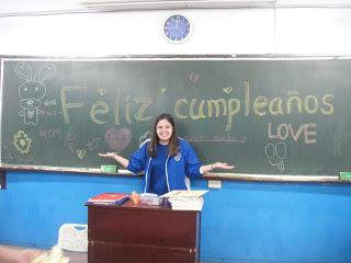 Lo mejor del asunto, además del hermoso detalle de tener la fiesta, es que en el pizarrón habían escrito “Feliz cumpleaños” y mi pastel tenía un sombrero mexicano y decía “te quiero mucho”, frase que le enseñé a una de mis compañeras hace tiempo. Se me hizo un detallazo y bueno, ya se imaginarán mi felicidad.